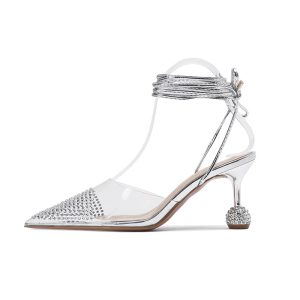 Muyindu spring style lady style fashion versatile rhinestone strap transparent toe silver high heels women’s sandals Toe shape: pointed Height: 8cm style: sexy Sole material: rubber Inner material: super fiber